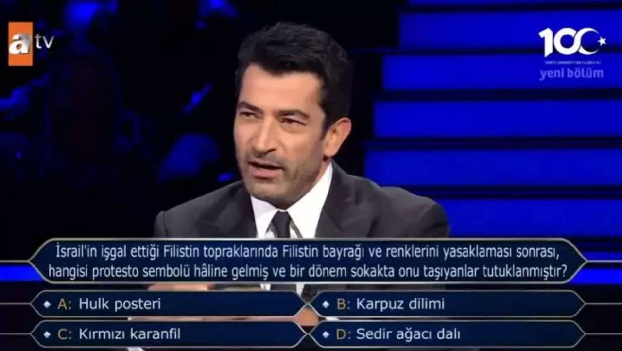 Kenan İmirzallıoğlu'nun sunumuyla ekranlarda yer alan Kim Milyoner Olmak İster yarışmasının yeni bölümünde, 1 milyon TL değerindeki Filistin sorusu sosyal medyada gündem oldu.