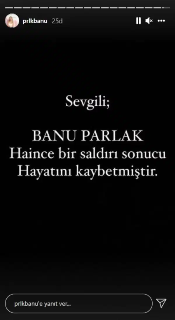 kısmından yapılan paylaşımda "Sevgili Banu Parlak haince bir saldırı
