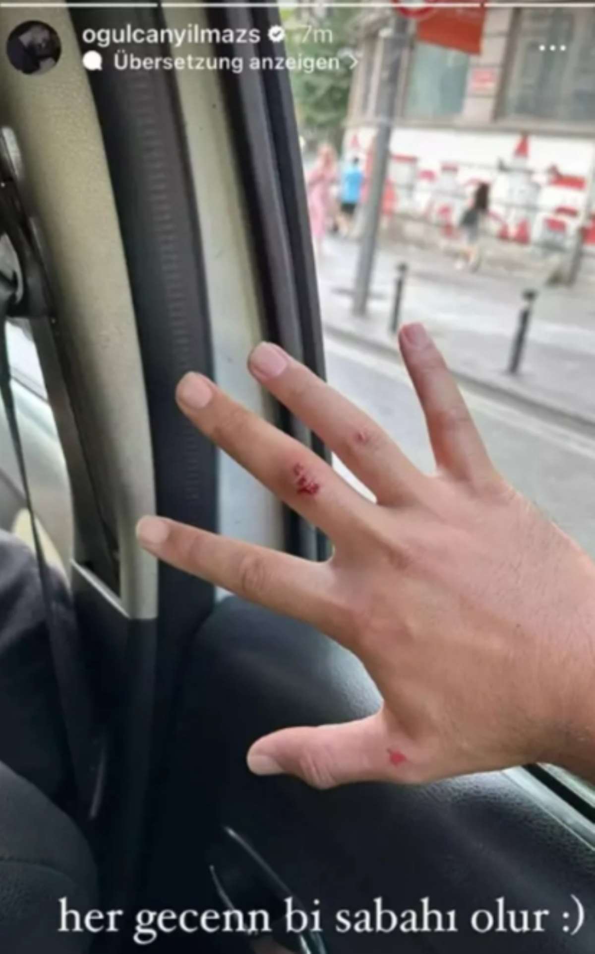 Kavganın ardından Oğulcan, kanayan elinin fotoğrafını paylaştı.