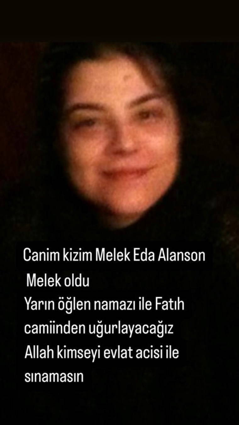"Canım kızım Melek Eda Alanson melek oldu. Yarın öğle namazı ile Fatih Camii’nden uğurlayacağız. Allah kimseyi evlat acısıyla sınamasın"