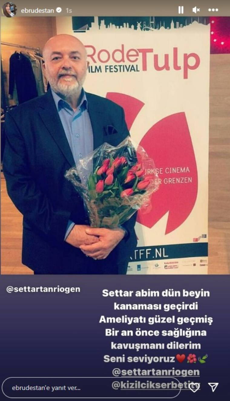 Daha önce Kızılcık Şerbeti'nde birlikte rol aldığı Settar Tanrıöğen'in sağlık durumu hakkında Instagram hesabından paylaşım yapan manken Ebru Destan, "Settar ağabeyim dün beyin kanaması geçirdi. Ameliyatı güzel geçmiş, bir an önce sağlığına kavuşmanı dilerim. Seni seviyoruz" ifadelerini kullandı.