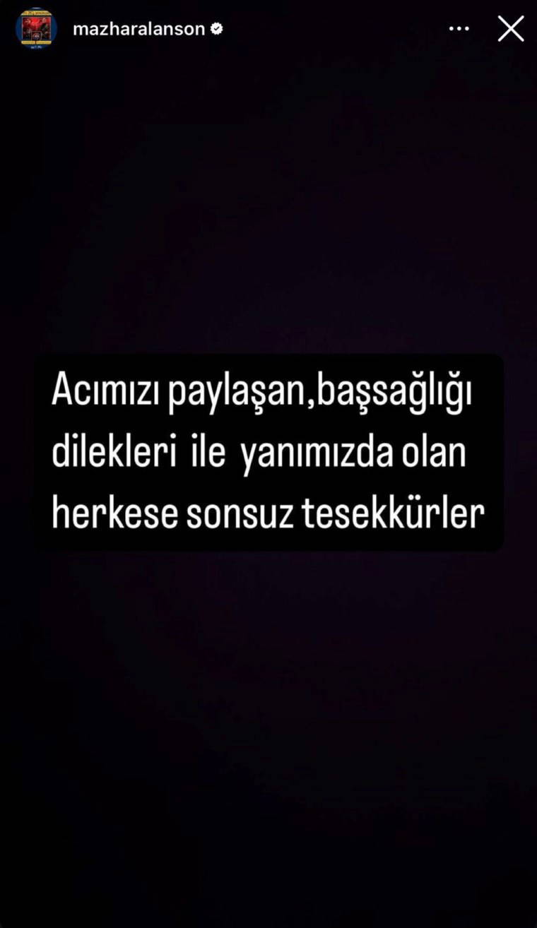 Ünlü sanatçı, “Acımızı paylaşan, başsağlığı dilekleriyle yanımızda olan herkese sonsuz teşekkürler,” ifadelerini kullanarak, yakınlarına minnettarlığını iletti.