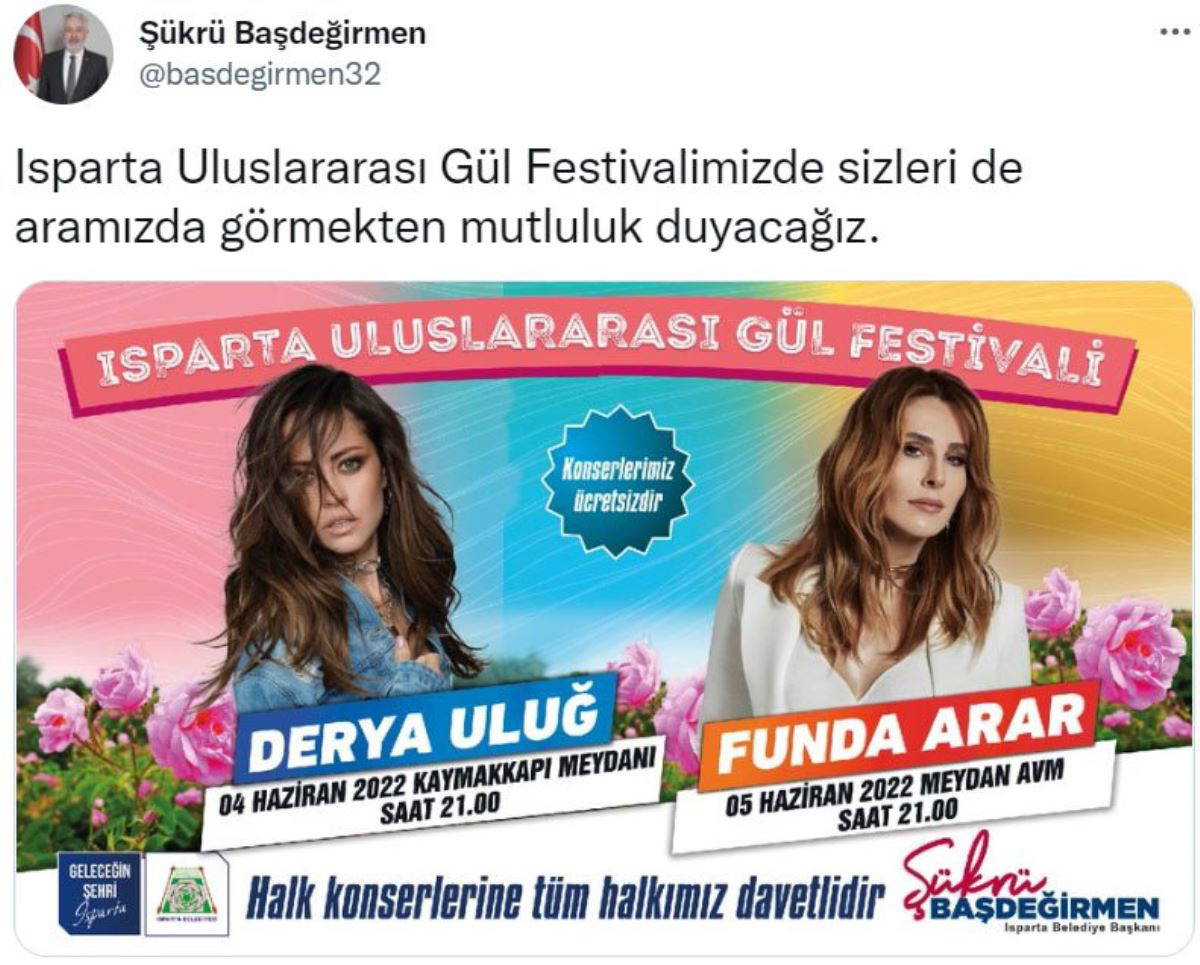 Isparta Belediye Başkanı Şükrü Başdeğirmen de akşam saatlerinde Twitter hesabından konserlerin afişini yeniden paylaştı. Mosso’nun konserine burada yer verilmediği görüldü.