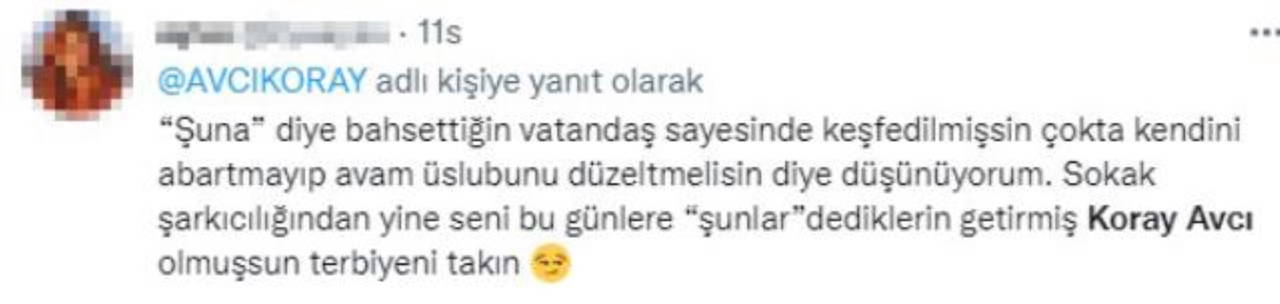 Yıllar önce sokak şarkıcılığı yapan ve sonra yıldızı parlayan Koray Avcı, bir takipçisine verdiği yanıtla gündeme geldi.