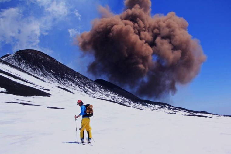 Yanardağın eteklerinde devam eden patlamalara rağmen, kayakçılar karla kaplı dağlarda kayak yapmaya devam ediyor. Etna'nın bu şekilde aktif olduğu dönemde bile, turistler ve yerel halk bu doğal tehlikeye rağmen kayakseverliklerinden ödün vermiyorlar.