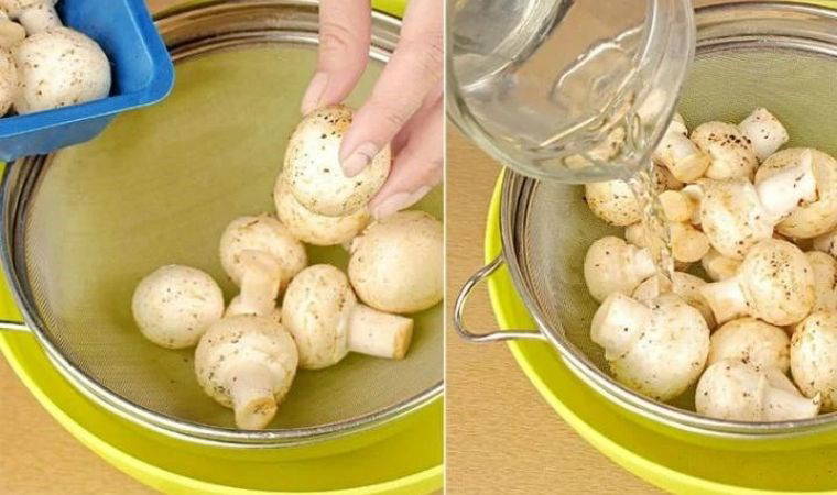 Su miktarı çok olmaması gerekiyor. Hazırladığınız limonlu suya mantarları batırıp çıkararak nemli bir bez ya da bir kağıt havlu yardımı ile mantarın siyah bölgelerini kolaylıkla temizleyebilirsiniz. Bu sayede mantar çok fazla suya maruz kalmadan temizlenmiş olur. İstiridye mantarını da bu yöntemi kullanarak kolaylıkla temizleme şansı bulabilirsiniz.