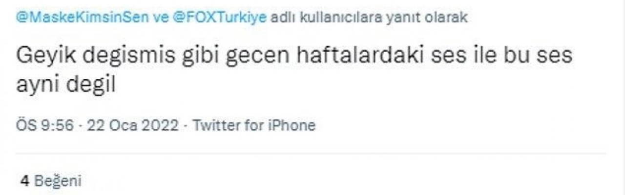 Yarışmanın dün akşam yayınlanan bölümünde, Geyik'in sesinin ve fiziğinin diğer bölümlere göre oldukça farklı olduğu ileri sürüldü. Bu durum, izleyenlerin 'Acaba Geyik değişti mi?' sorusunu sormasına neden oldu.