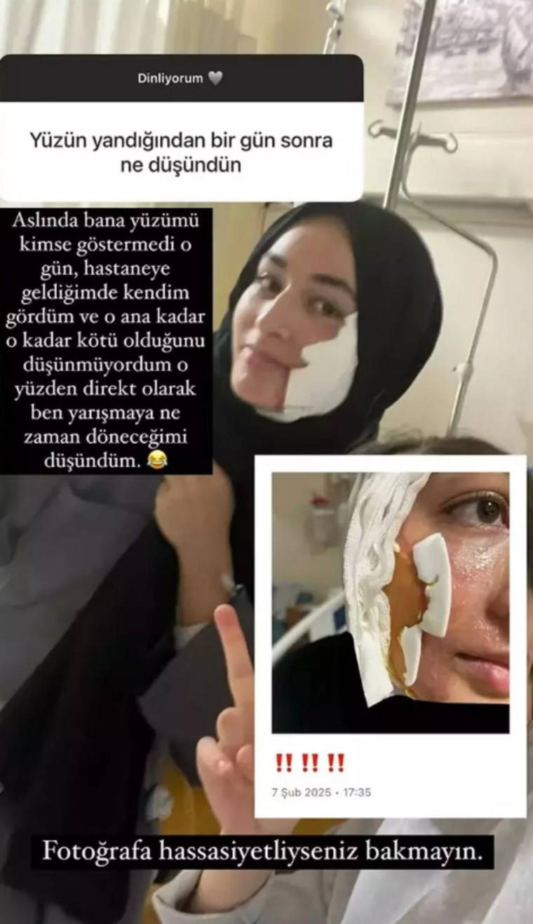 Beyza Huri Aydın’ın sosyal medya üzerinden paylaştığı yeni fotoğrafta yüzündeki yanık izleri net bir şekilde görüldü. Yarışmacı, takipçilerine dikkatli olmaları konusunda uyarılarda bulundu.