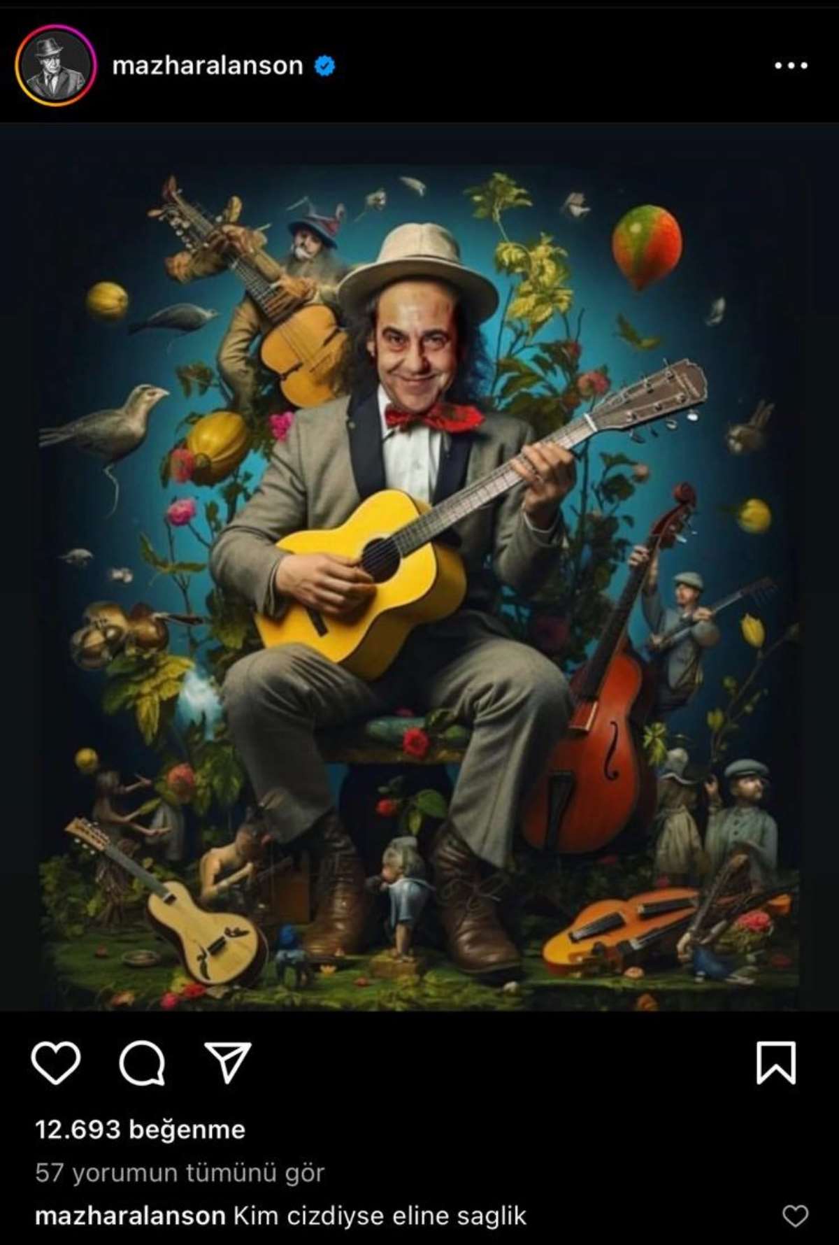 Mazhar Alanson da Özkan Uğur'un vefatından sonra ilk kez paylaşım yaptı. Özkan Uğur için yapılan bir çizimi paylaşan Mazhar Alanson, paylaşımına "Kim çizdiyse ellerine sağlık" notunu düştü.