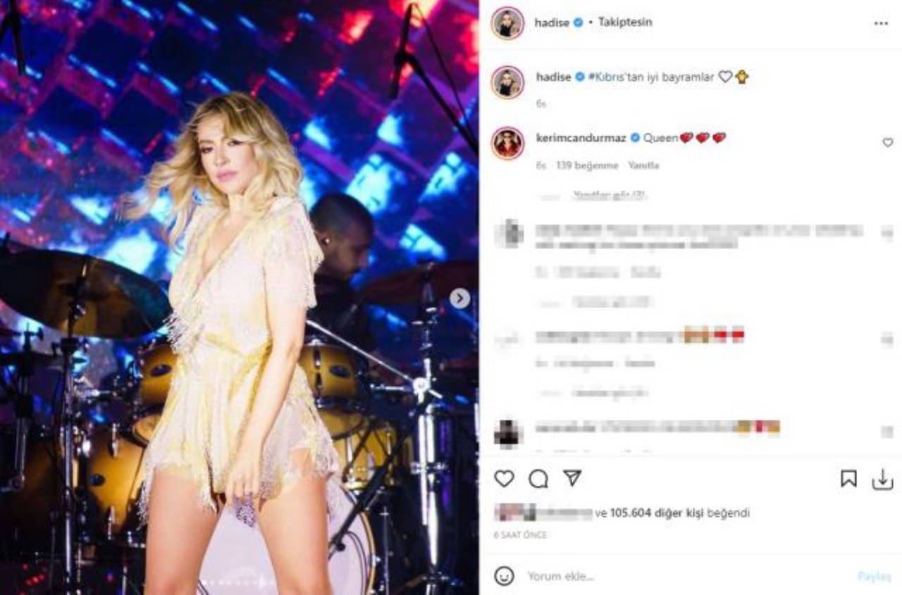 Peş peşe söylediği şarkılarla hayranlarına unutulmaz bir gece yaşatan şarkıcı, sahne pozlarını da Instagram hesabından yayınlamayı ihmal etmedi. Ünlü şarkıcı, fotoğraflarını "Kıbrıs'tan iyi bayramlar" notuyla yayınladı.