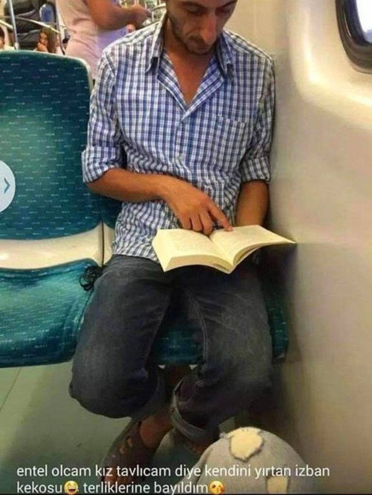 Yaklaşık 6 yıl önce İzban'da bir metroda kitap okuyan Ali Uçar'ın gizlice fotoğrafını çeken vatandaş “Entel olacağım, kız tavlayacağım diye kendini yırtan izban kekosu, terliklerine bayıldım” ifadelerini kullanmıştı.