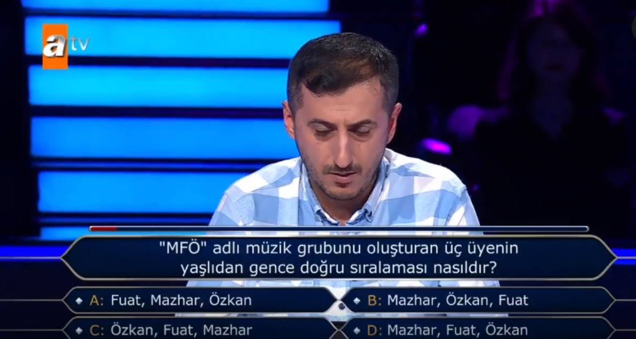 Yarışmada kendisine sorulan "MFÖ adlı müzik grubunu oluşturan üç üyenin yaşlıdan gence doğru sıralaması nasıldır?" sorusuna, C şıkkı 'Özkan, Fuat, Mazhar' cevabını veren Uçar, doğru cevabın A şıkkı, 'Fuat, Mazhar, Özkan' olması üzerinde elendi.