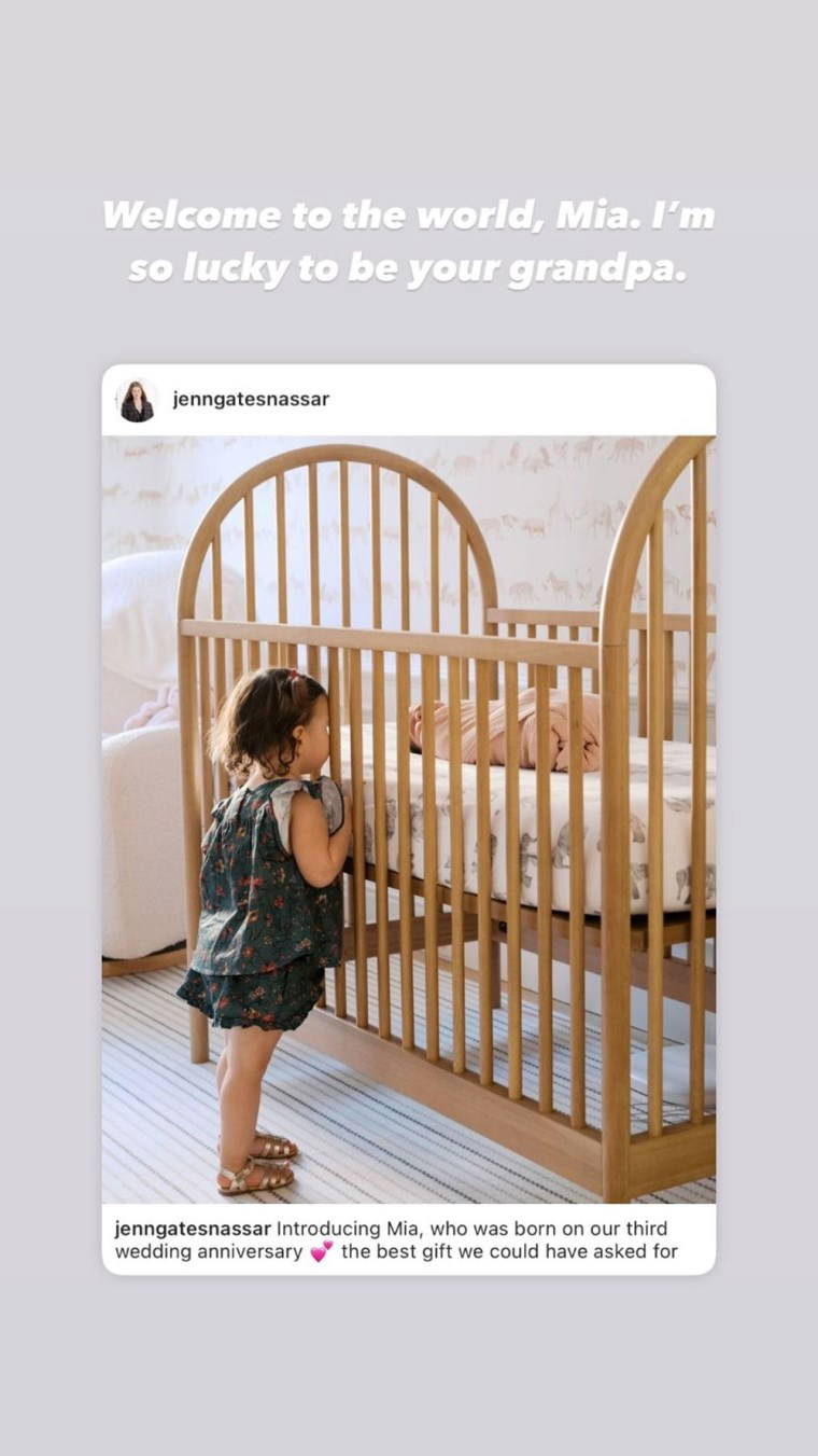İkinci kez dede olmanın sevincini yaşayan Bill Gates, kızının paylaşımını alıntılayarak, "Dünyaya hoş geldin Mia. Senin büyükbaban olduğum için çok şanslıyım" sözleriyle mutluluğunu dile getirdi.