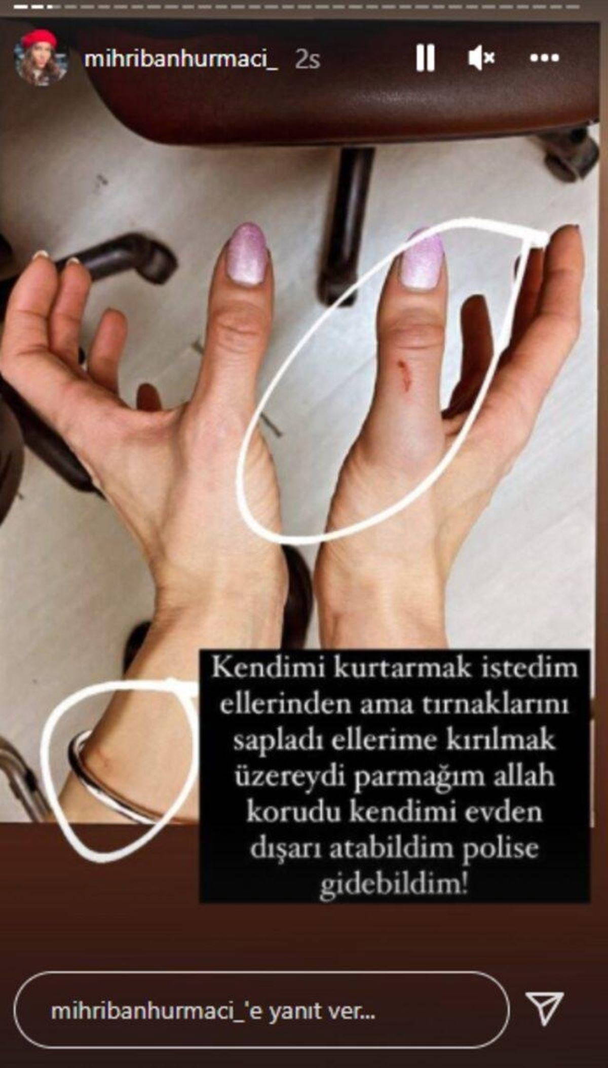 "Mihriban Hurmacı'nın yaptığı paylaşımlar ve iddiaları gerçeği yansıtmamaktadır" denilen açıklamada, "03.02.2022 tarihinde ise Mihriban Hurmacı geçirdiği sinir krizi sonrası müvekkilim Özer Hurmacı tarafından sakinleştirilmeye çalışılmış ancak bir türlü sakinleşmeyen Mihriban Hurmacı, müvekkilime saldırmış ve parmağını koparırcasına ısırmaya başlamıştır. Bunun üzerine müvekkilim bu durumdan kurtulmaya çalışırken Mihriban Hurmacı'nın kaşında kanama olmuş ve o halde darp raporu almak üzere hastaneye gitmiştir. Yüzünün diğer bölgelerinde görülen kanlar da kaşındaki kanamadan kaynaklanmaktadır. Ayrıca Mihriban Hurmacı'nın Özer Hurmacı'nın parmağını ısırması neticesinde parmağına 3 dikiş atılmıştır. Taraflar birbirinden şikayetçi olmuştur. Paylaşılan fotoğraflarda da görüleceği üzere sadece kan bulunmakta olup, darp izi dahi yoktur" denildi.