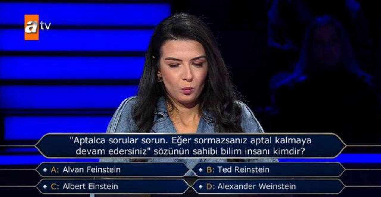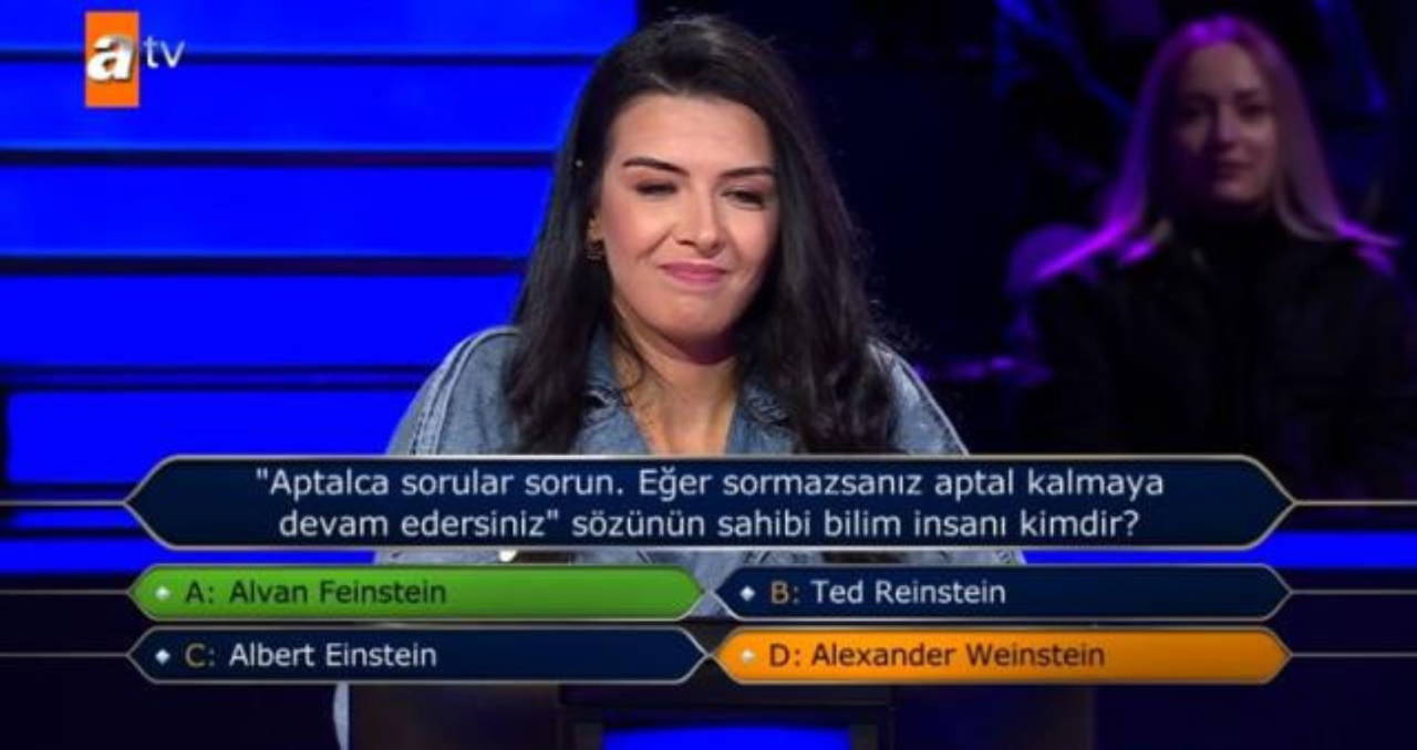 Doğru cevabı bilmediğini söyleyen Nurseda Kılıç ise joker hakkı olmadığı için yarışmadan çekilme kararı aldı.