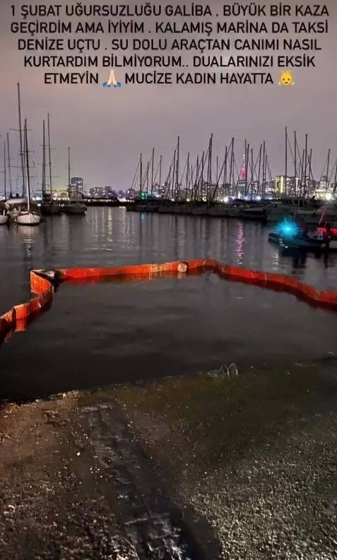 Ece Su Uçkan, daha sonra sosyal medya hesabından yaşadığı korku dolu anları anlattı. Taksi ise sabah saatlerinde denizden çıkarıldı.