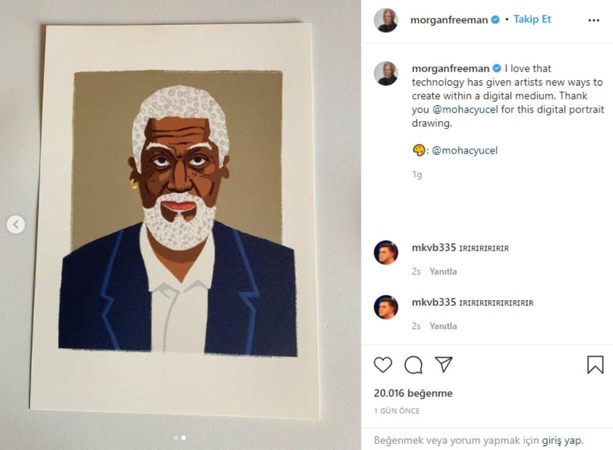 ABD'li oyuncu Morgan Freeman’ın portresini çizen İstanbul merkezli sanatçı Mohaç Yücel’in eserini, oyuncunun kendisi de Instagram hesabından özel bir teşekkürle paylaştı.