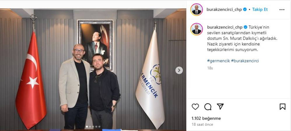 Ziyaretin ardından bir açıklama yapan Burak Zencirci, Murat Dalkılıç'ın ziyaretinden duyduğu memnuniyeti dile getirerek, ünlü şarkıcıya teşekkür etti.