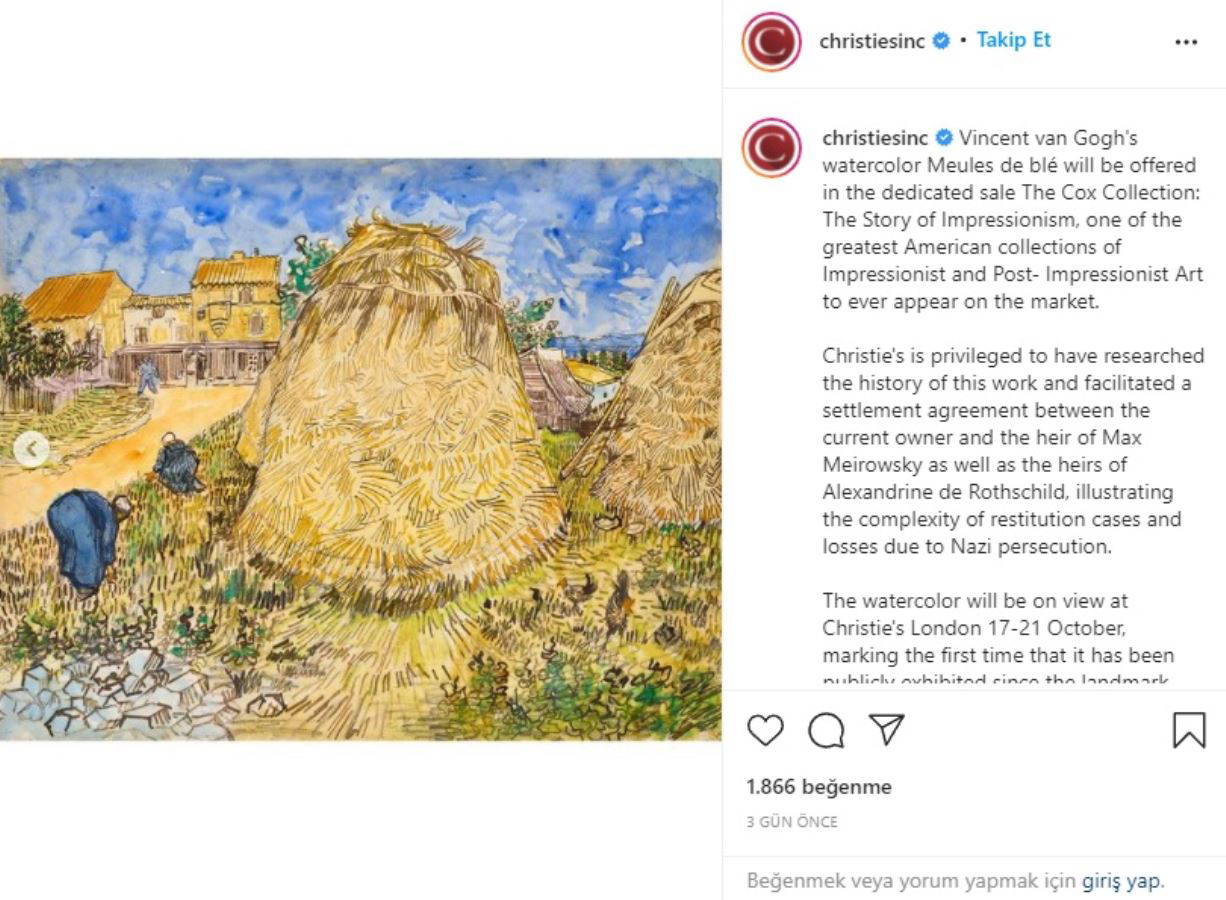 11 Kasım’da yapılacak olan satış, Cox ailesinin sahip olduğu koleksiyonundan oluşuyor ve Van Gogh’un tablosu öne çıkıyor. Tablo satılırsa, Van Gogh eseri için ödenen en yüksek fiyat ile dünya rekoru kırabilir.