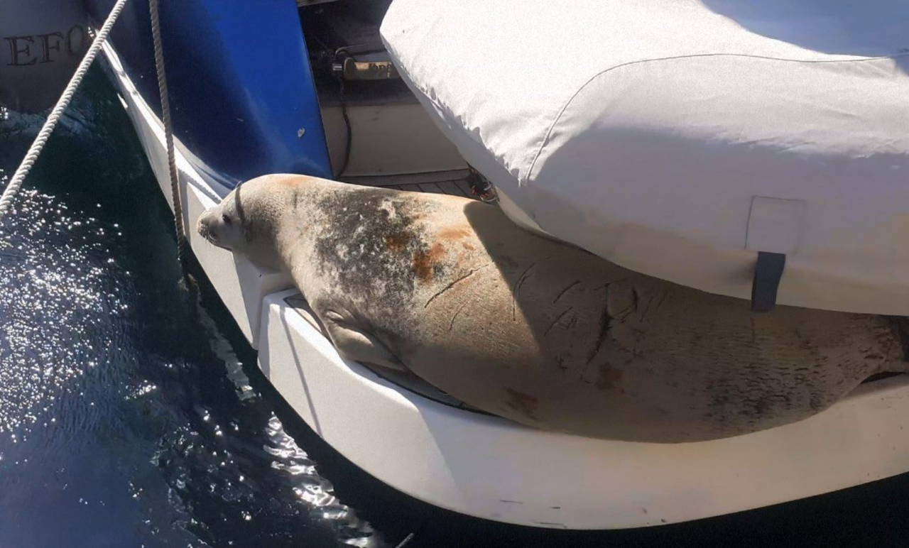 Dünya genelinde 700, Türkiye’de ise 100 kadar olduğu tahmin edilen Akdeniz foklarının nesli her geçen gün yok olma tehlikesi altına girerken, Aydın'ın Didim ilçesinde bir tekneye sığınan Akdeniz foku görüntülendi.