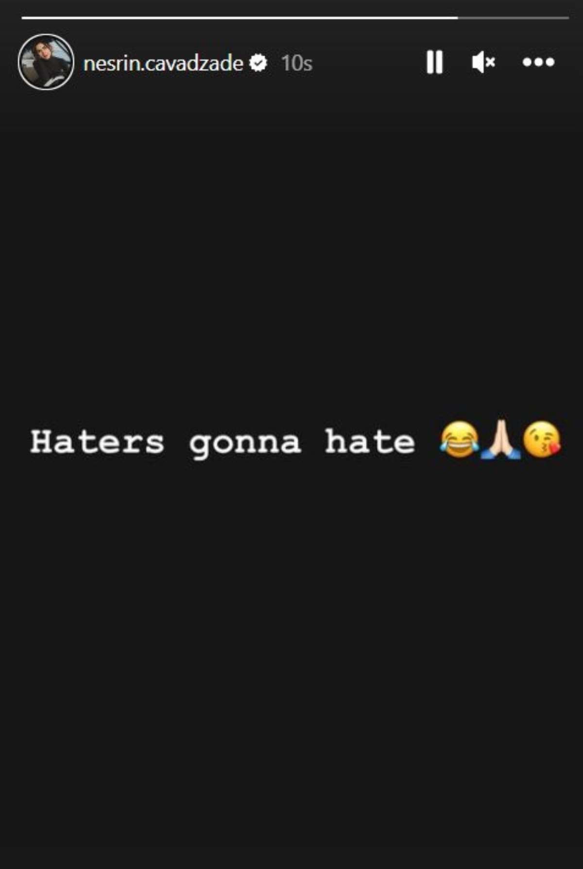 Sosyal medyada gelen tepkilerin ardından Cavadzade, Instagram hesabından bir paylaşım daha yaparak, "Haters gonna hate" (Kıskananlar çatlasın) yazdı.
