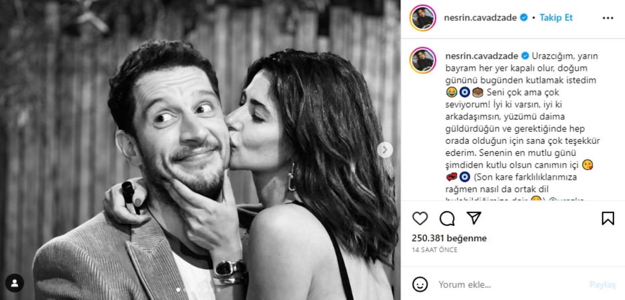 Son olarak FOX TV'de yayımlanan ve final yapan 'Yasak Elma' dizisi ile izleyici karşısına çıkan ünlü oyuncu Nesrin Cavadzade, 'Üç Kuruş' dizisindeki partneri Uraz Kaygılaroğlu'nun 36'ncı yaş gününü bir gün önceden kutladı.