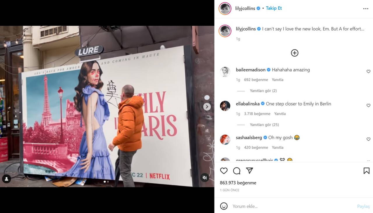 Netflix dizisi 'Emily in Paris'in yıldızı Lily Collins ve