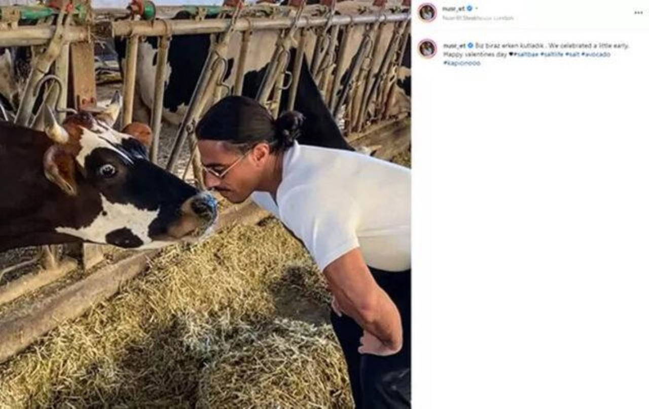 Instagram'da 42 milyondan fazla takipçisi olan Nusret, işletmesine ait tesiste dana ile verdiği pozla 'Sevgililer Günü'nü 'kutladı'.