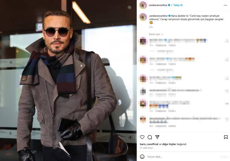 "Bana dediler ki 'Cenk Bey neden ameliyat oldunuz?' Cevap veriyorum: Böyle görünmek için... Saygılar, sevgiler."