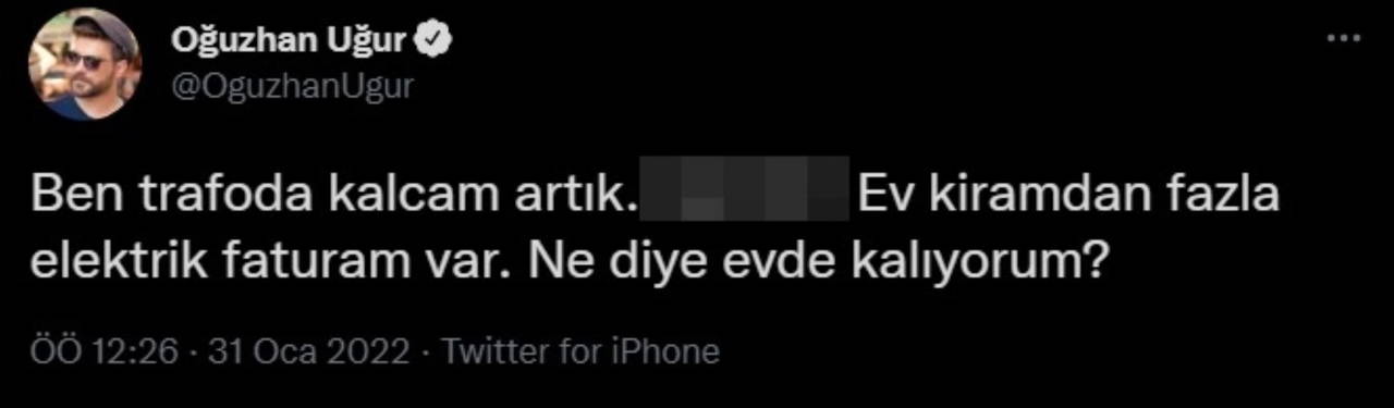 Son olarak elektrik faturalarında görünen manzaraya bir tepki de ünlü YouTuber Oğuzhan Uğur'dan geldi. Twitter hesabından paylaşım yapan Oğuzhan Uğur, “Ben trafoda kalacağım artık. Ev kiramdan fazla elektrik faturam var. Ne diye evde kalıyorum?” ifadelerini kullandı.