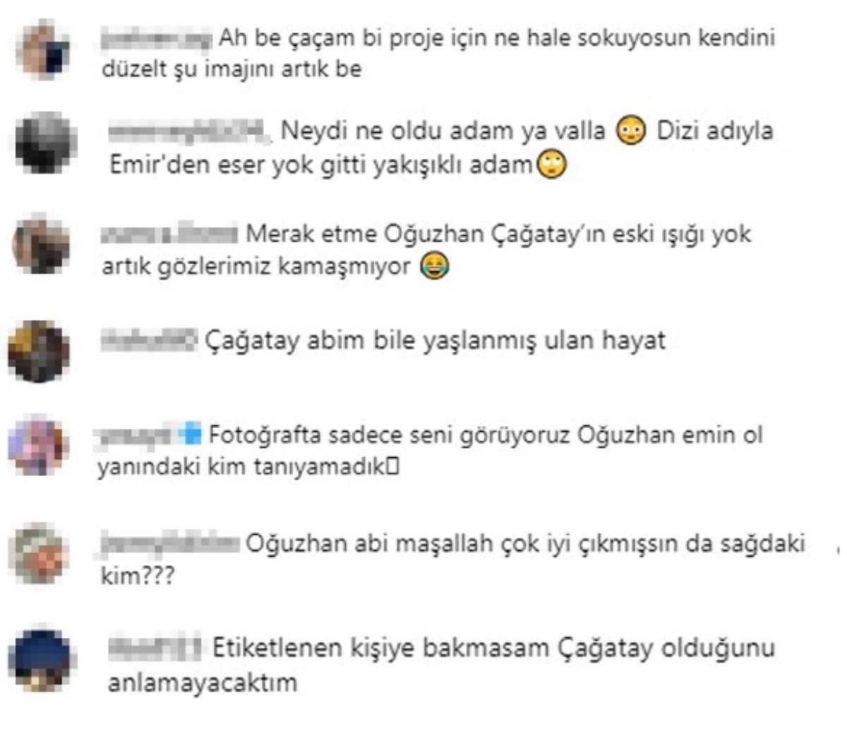 Fotoğrafta Çağatay Ulusoy'u tanıyamayan birçok kullanıcı "Paylaşımda adı olmasa tanıyamazdım" yorumunu yaptı.