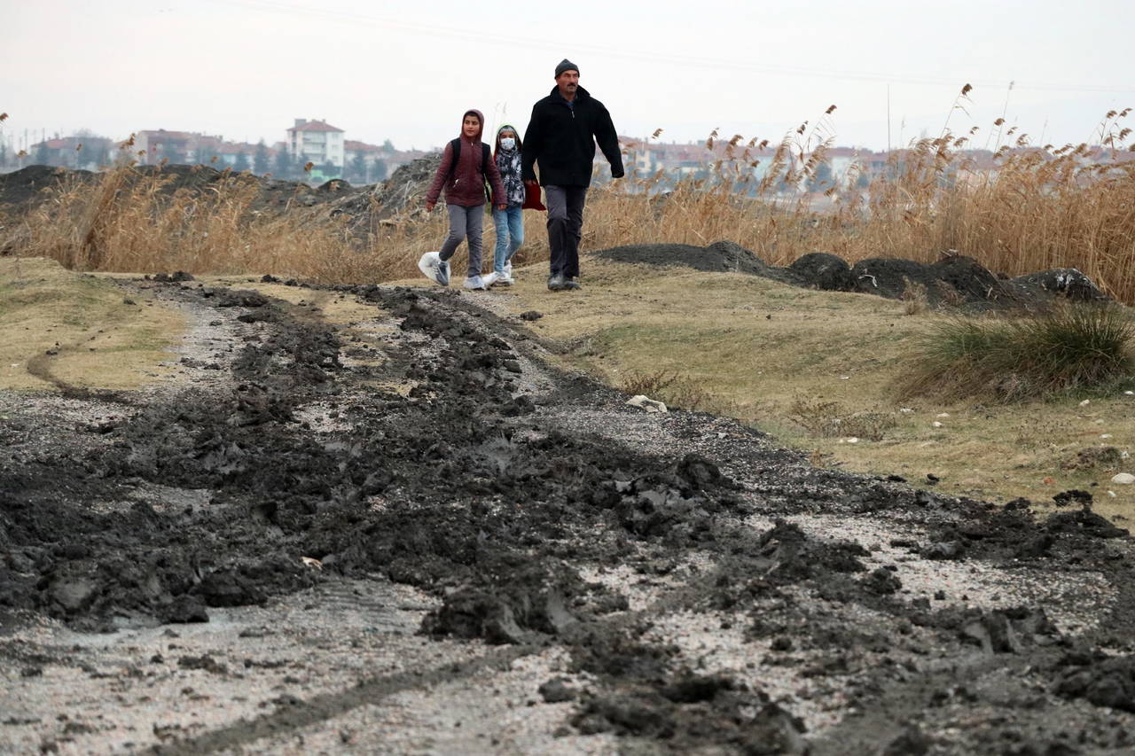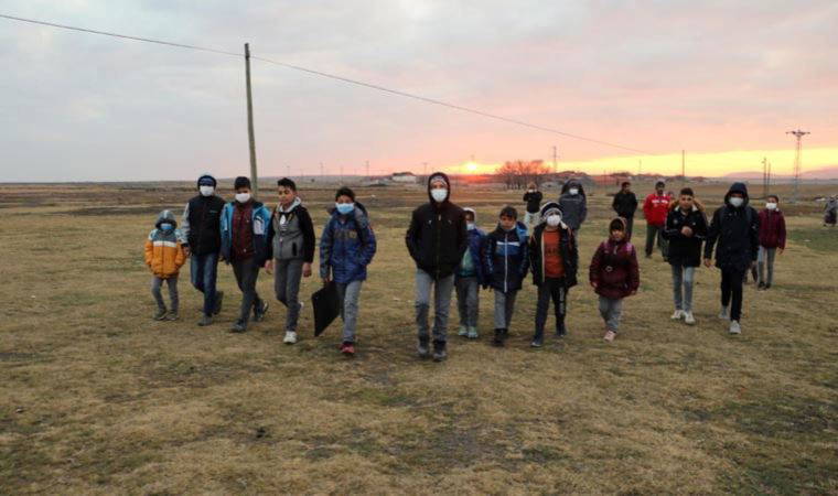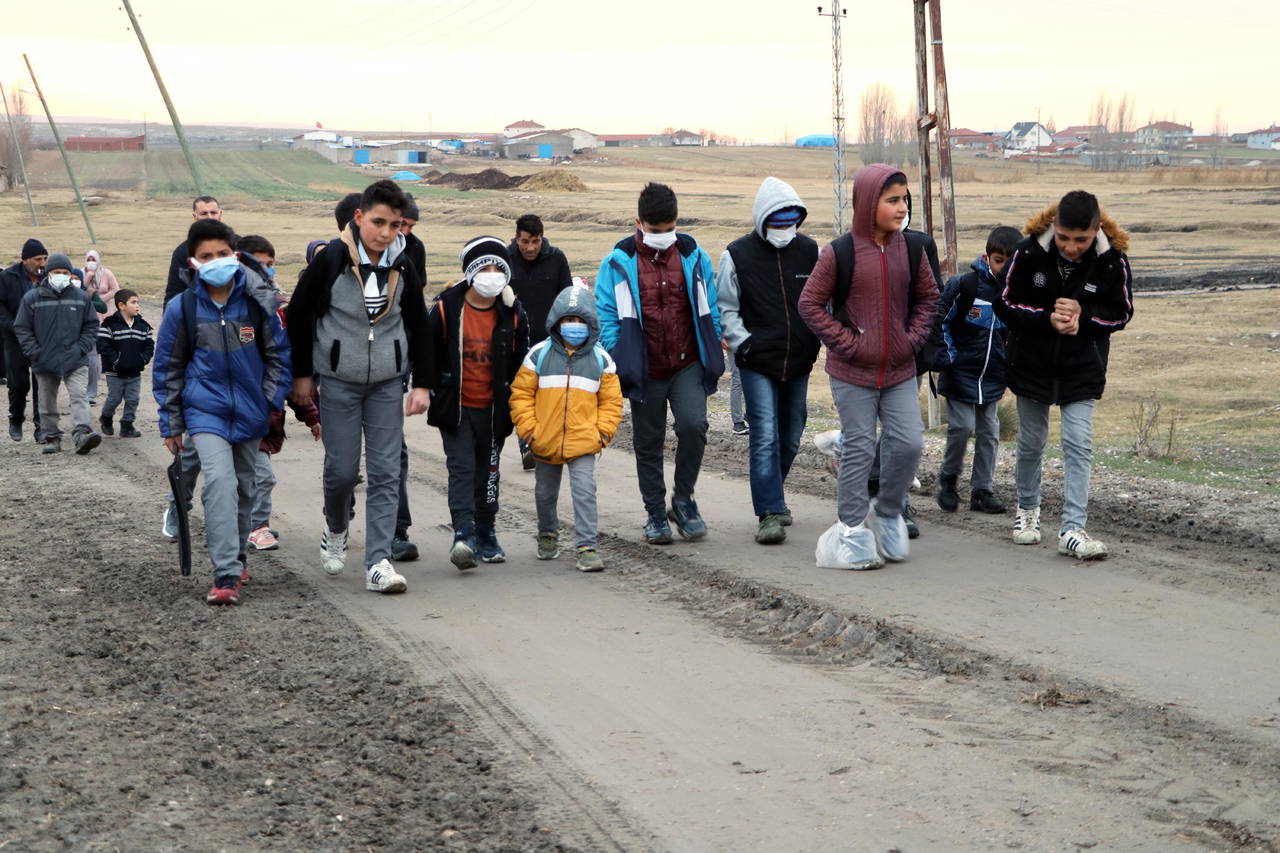 Mehmet Emin Aydın ise çocukların çamurlu arazilerde ayaklarına poşet bağlayıp yürüdüklerini belirterek, "Çocukların halini görüyorsunuz, çamur içindeler. Ayaklarında poşetle geliyorlar. Çocuklara köpekler saldırıyor. Çocuklarımızı gönderemiyoruz. Çevre yolundan geçiyorlar, tehlikesi var. Yardım istiyoruz yoksa çocuklarımızı gönderemiyoruz. 7'de işe gidiyorum, çocuğum 8'de okula gidiyor. Ben nasıl götüreyim? Götürüp, getirmek zor oluyor. Yol zaten sıkıntılı, 3 kilometre mesafe var" diye konuştu.