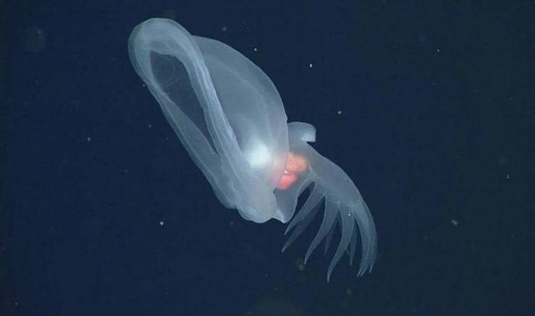 Bathydevius biyolüminesansla parlayan, kürek benzeri bir kuyruğu ve büyük jelatinimsi bir başı olan yüzen bir deniz sümüklüböceği olarak tanıtılıyor. Bu canlının derin okyanusta yaşayan ilk deniz sümüklüböceği olduğu açıklandı.