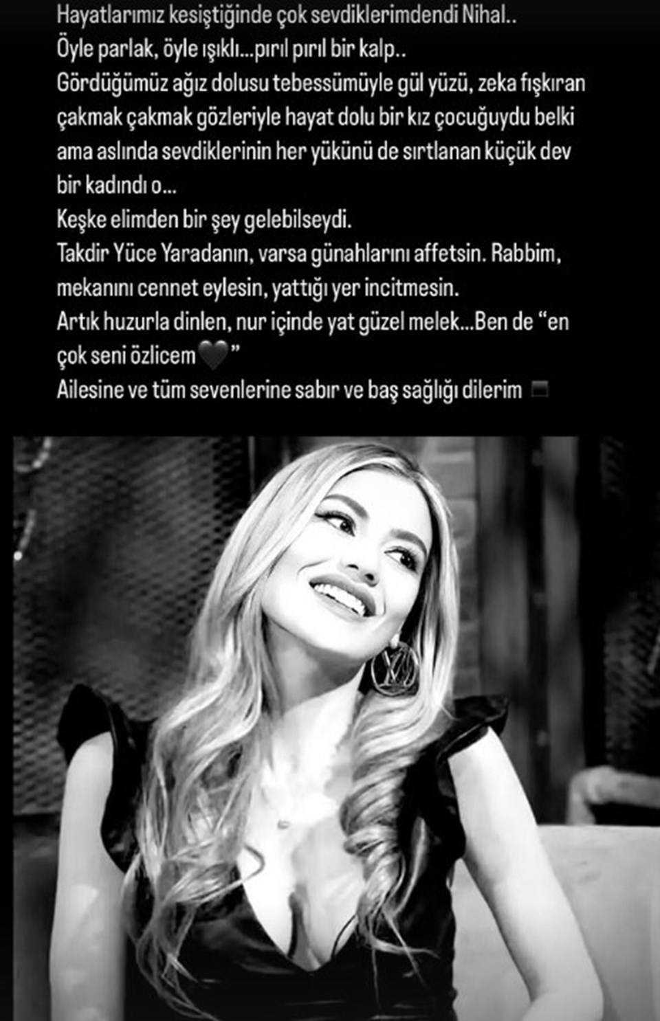 "Keşke elimden bir şey gelebilseydi. Takdir Yüce Yaradanın, varsa günahlarını affetsin. Rabbim, mekanını cennet eylesin, yattığı yer incitmesin. Artık huzurla dinlen, nur içinde yat güzel melek... Ben de en çok seni özleyeceğim. Ailesine ve tüm sevenlerine sabır ve başsağlığı dilerim."