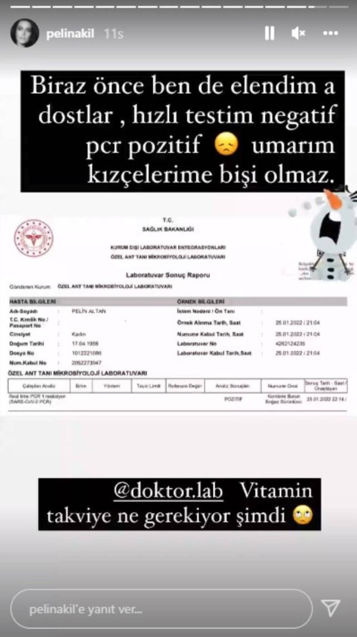 Durumu ağırlaşınca hastaneye giderek test yaptıran Akil, koronavirüse yakalandığını duyurdu. İkiz kızları bulunan oyuncu yeni bir paylaşım yaparak "Biraz önce ben de elendim a dostlar. Hızlı testim negatif, PCR testim pozitif. Umarım kızçelerime bir şey olmaz" ifadelerini kullandı.