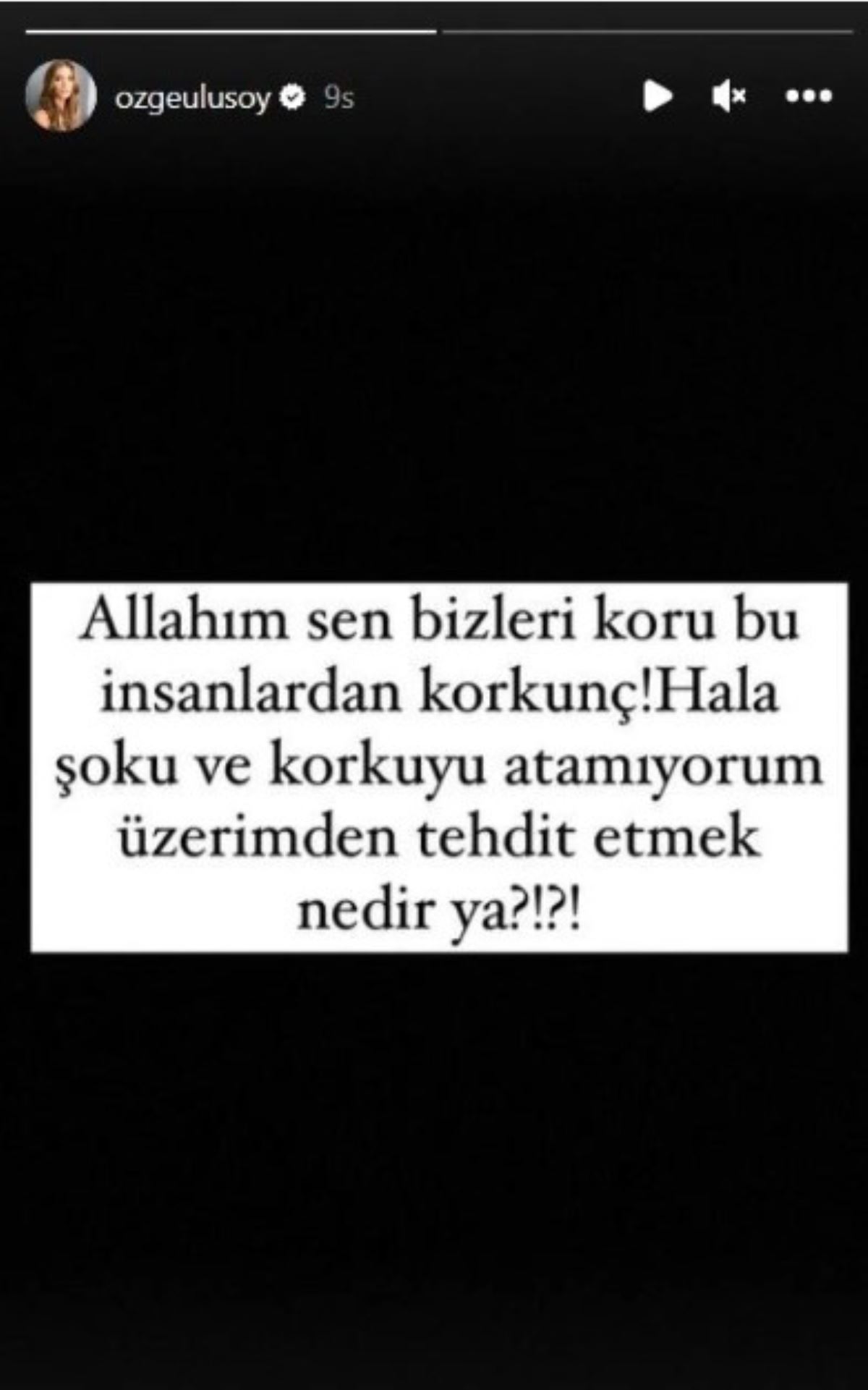 Ulusoy sonrasında yaptığı paylaşımda ise, "Allahım sen bizleri koru bu insanlardan korkunç! Hala şoku ve korkuyu atamıyorum üzerinden tehdit etmek nedir ya?!"