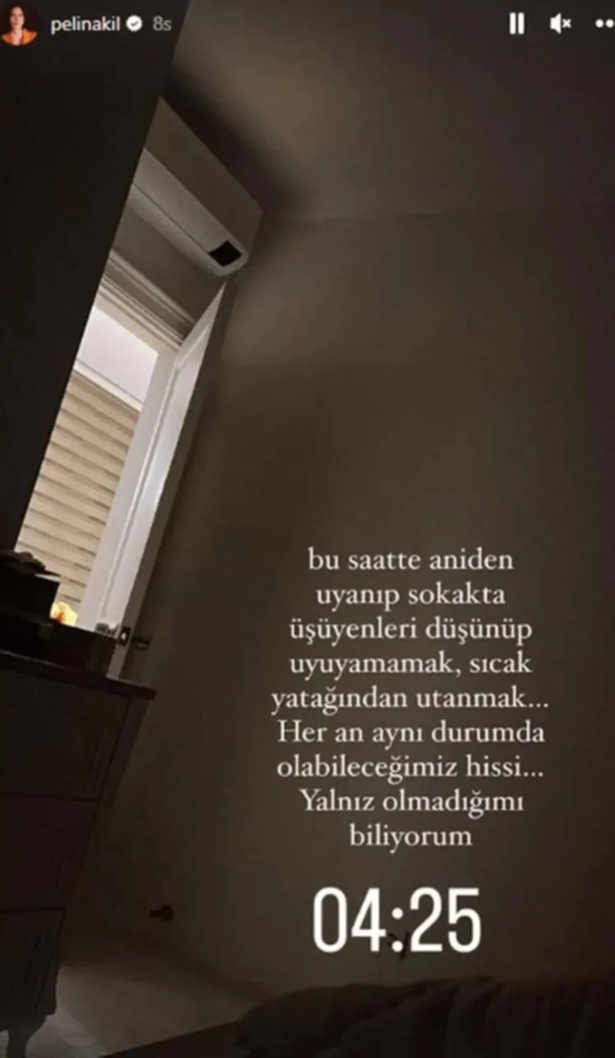 Üşüyerek uyumaya çalışan depremzedeler varken kendisine rahat bir uykuyu hak görmediğini belirten oyuncu, paylaşımında şu ifadelere yer verdi: