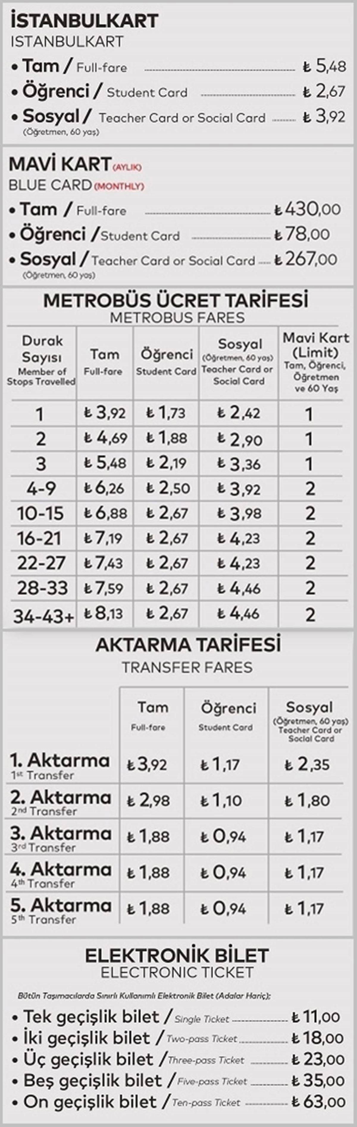 İSTANBUL TOPLU ULAŞIM ÜCRET TARİFESİ (31 MART 2022)