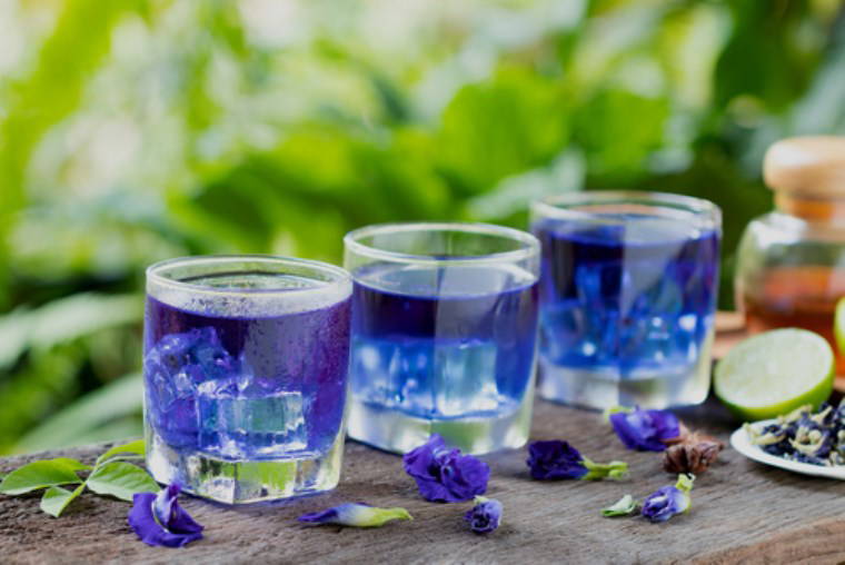 Mavi çay, smoothie'lere eklenerek doğal bir renk ve antioksidan kaynağı olarak kullanılabilir.