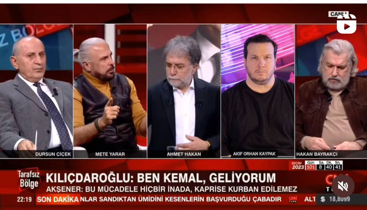 Gökbakar'ın paylaştığı videoda, CNN Türk yayınına katılan "Akif Orhan Kaypak" karakteri, dişlerini fırçaladı ve ayak tırnaklarını kesti.