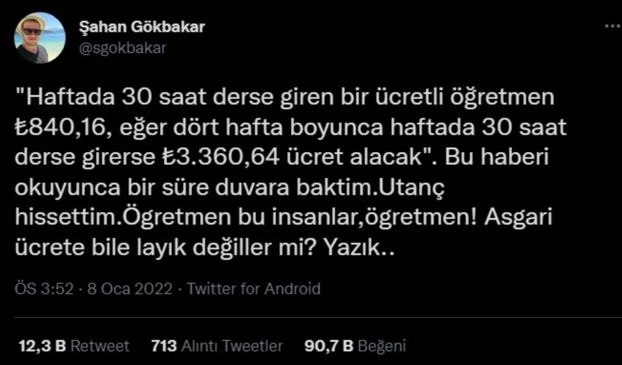 Şahan Gökbakar, bu defa da ücretli öğretmenlerle ilgili paylaşımda bulundu.
