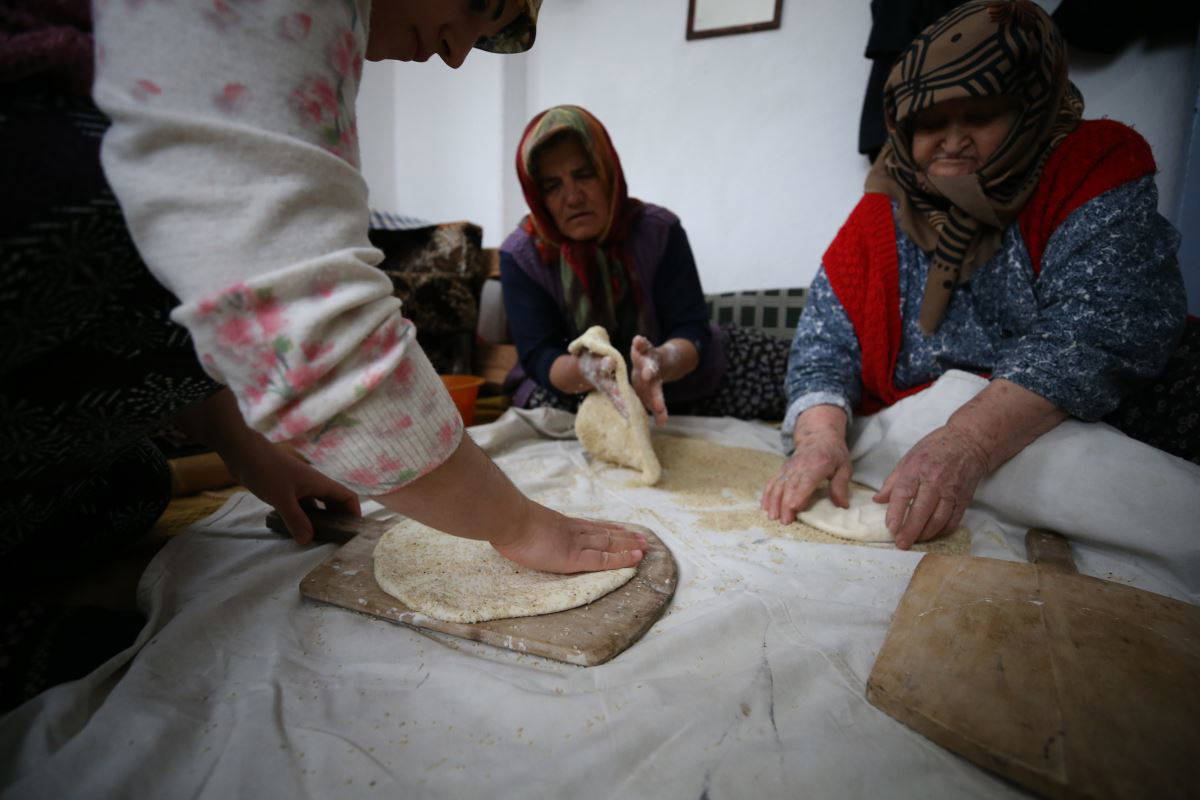 Mahallede çöreği yapan kadınlardan Nagiye Güleç (69) ise çöreğin yapımını ninelerinden gördüğünü söyledi.
