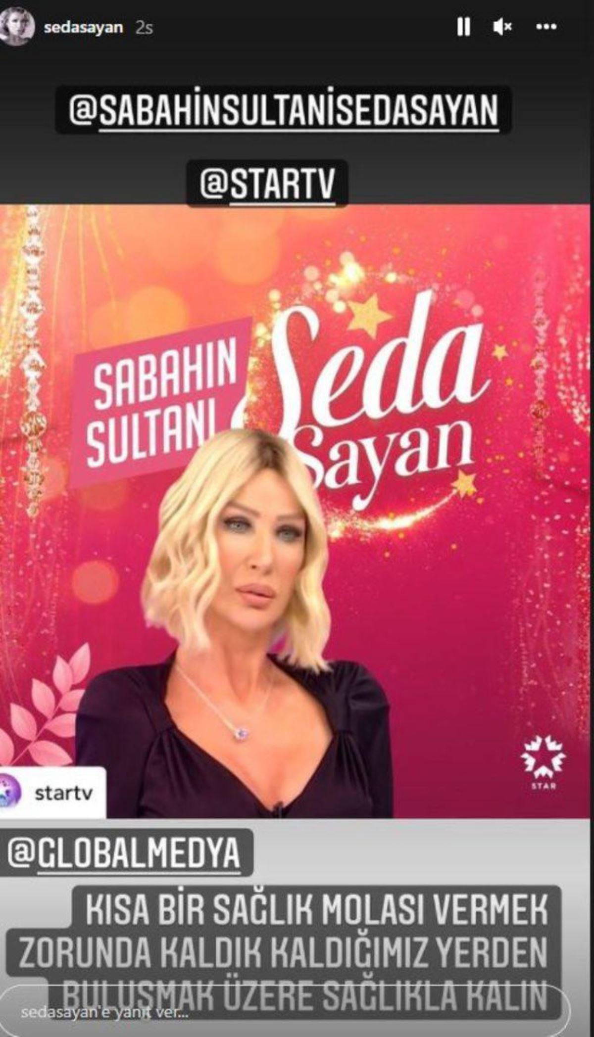 Sayan'ın sosyal medya hesabından programa kısa bir süre sağlık arası verileceği açıklaması paylaşıldı. Yılbaşı akşamı Bakırköy'de bir mekanda sahne alan Seda Sayan'ın koronavirüse yakalandığı iddia edildi.