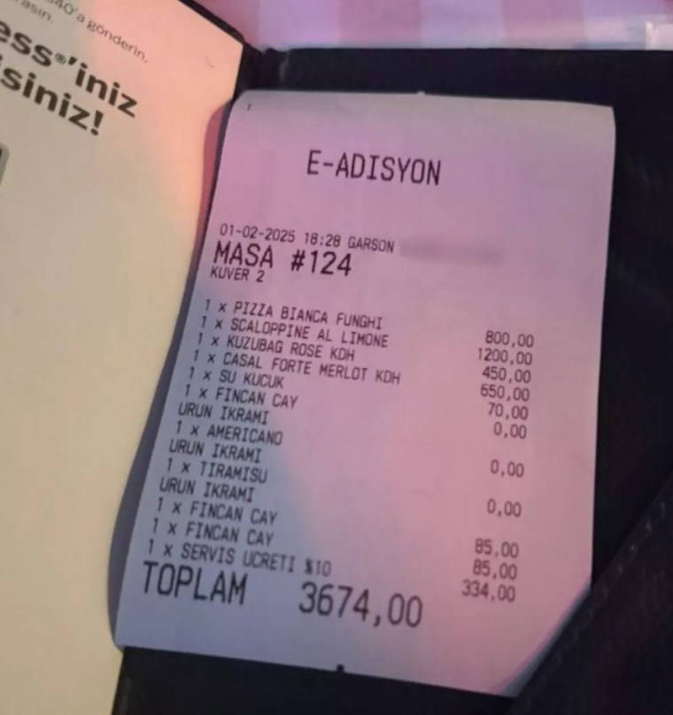 Onedio'da yer alan adisyonda gelen 3 bin 674 TL'lik hesap ve ikramlar dikkat çekti. Danilo Şef'in açık mutfak kullanılan restoranında kruvasanlar meşhur olsa da çayın fiyatı konuşuldu.