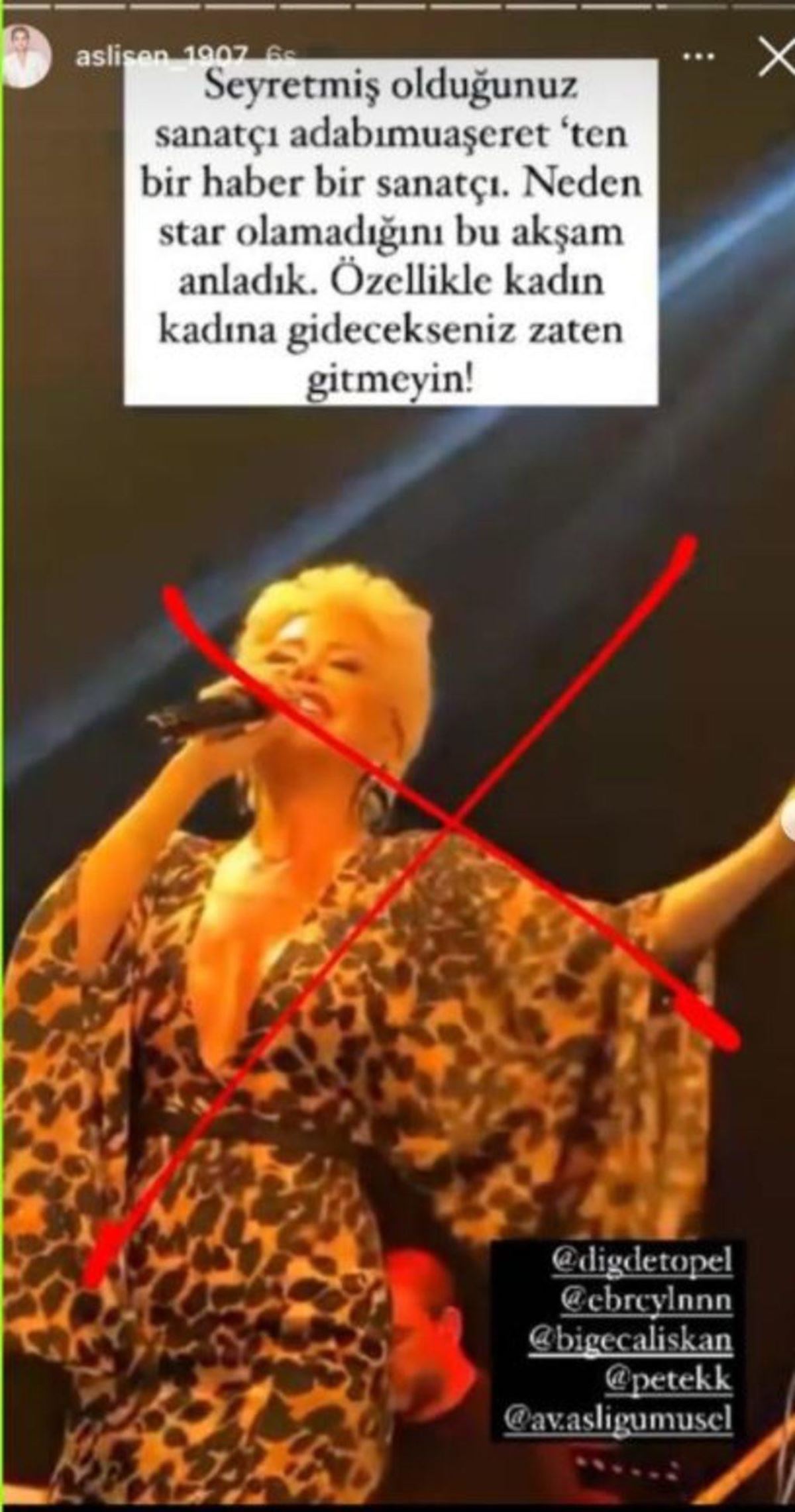 Linet'in videosunu paylaşıp üzerine çarpı atan Şen, “Seyretmiş olduğunuz sanatçı adabımuaşeretten bihaber bir sanatçı. Neden star olamadığını bu akşam anladık. Özellikle kadın kadına gidecekseniz zaten gitmeyin!" demişti.