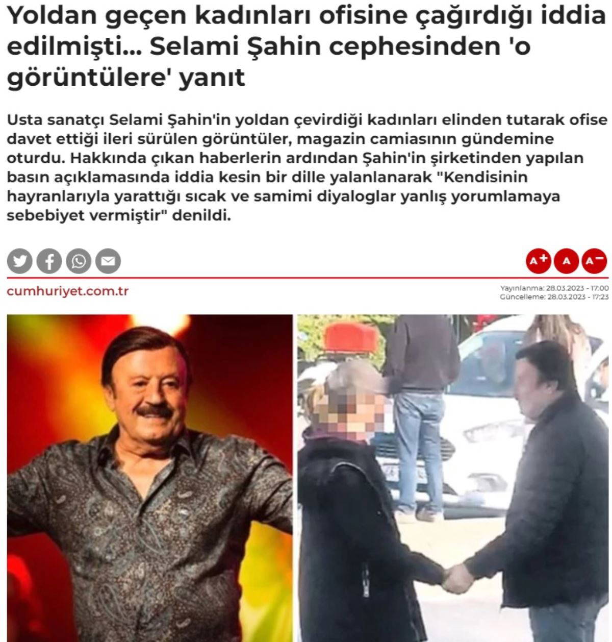 Ünlü sanatçı Selami Şahin'in Etiler'deki bir alışveriş merkezinin önünde bekleyen yanından geçen kadınları rahatsız ettiği, hatta ellerinden tutarak ofisine davet ettiği ileri sürülmüştü.