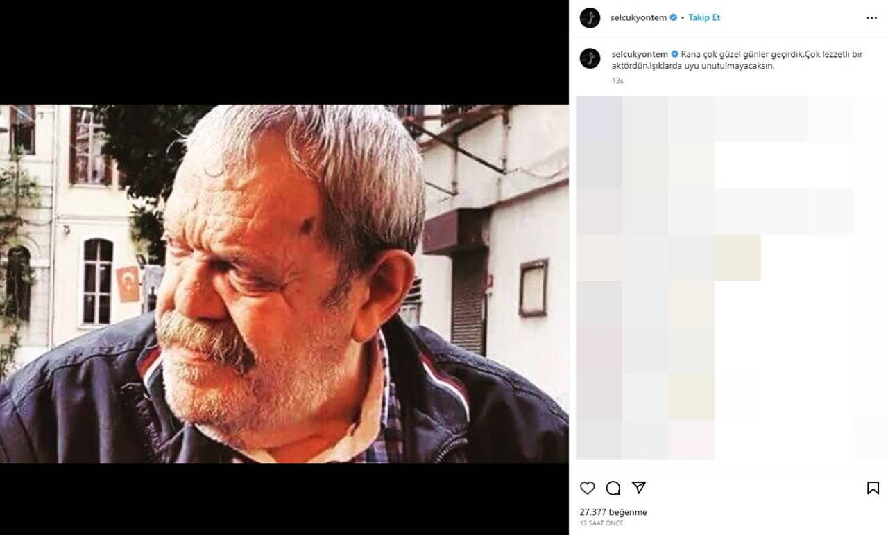 Instagram'dan Cabbar'ın bir fotoğrafını paylaşan Yöntem, "Rana çok güzel günler geçirdik. Çok lezzetli bir aktördün. Işıklarda uyu, unutulmayacaksın" ifadelerini kullandı.