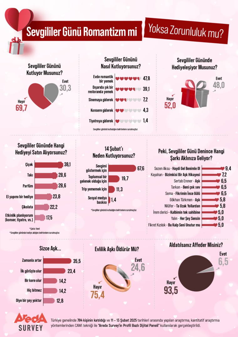Areda Survey’in 2025 Şubat ayında gerçekleştirdiği "Sevgililer Günü" araştırmasında ilginç sonuçlar ortaya çıktı.