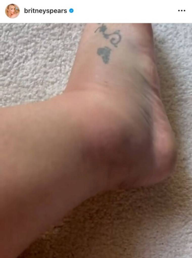 Spears, odasında zıplamaya çalışırken düştüğünü söyleyerek ayağındaki şişliği sosyal medya hesabında paylaştı.