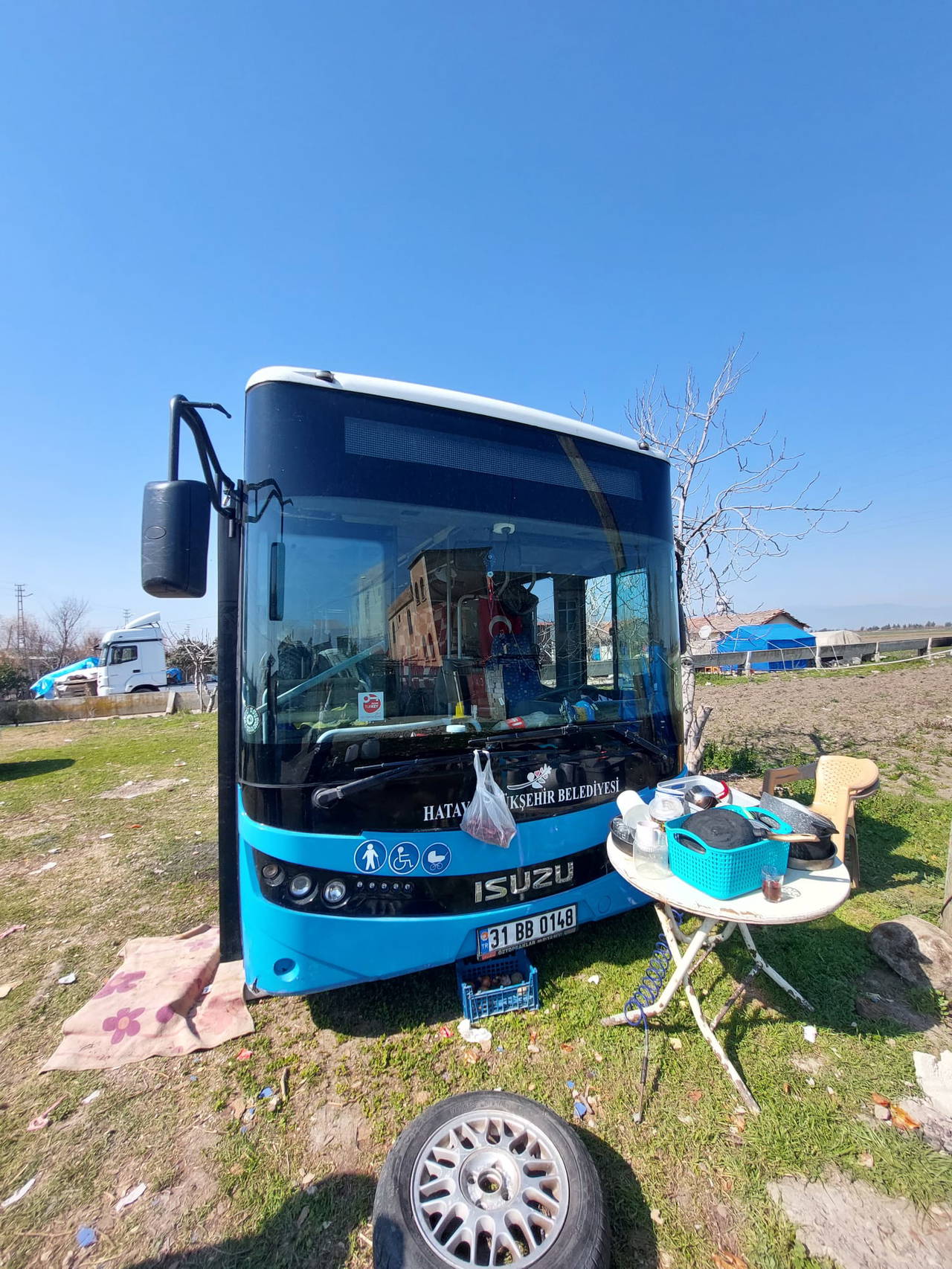 Şimdi ailesiyle halk otobüsünde yaşadıklarını belirten Akıncı, "Önceden elektrik yoktu otobüste bir şey yapamadık ama, şimdi bir düzen kurduk. Çocuklar televizyon seyrediyor, ısıtıcı var. Fazla olan birkaç koltuğu söküp bir yol açtık, şükür şu anda idare ediyoruz. Battaniye, yorgan, yastık gibi eşyaları 3-4 gün sonra, kendi malımızı çalar gibi, eve gidip hızlıca alıp çıktık. Antakya merkezden köyümüze geldik, şimdilik buradayız. Konteyner evler kuruyorlar ama köyümüzü, eşyamızı, ailemizi bırakıp gidemeyiz. Bulunduğumuz yere konteyner ev kurulursa iyi olur. Yoksa otobüste yaşamaya devam edeceğiz. Rahat değil ama idare edeceğiz, en ufak bir sallantıdan korkuyoruz, buna da şükür" dedi.
